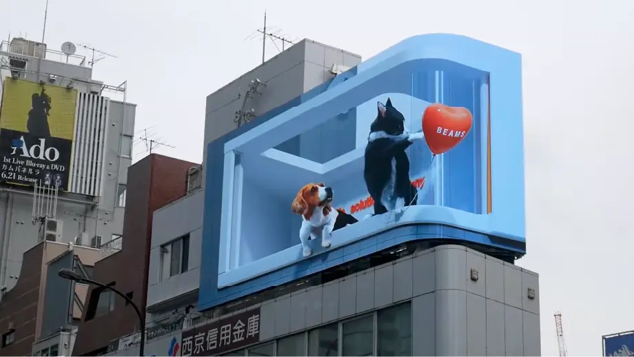 裸眼3D映像の豊富な制作実績をもとに、通行者の視線を集め、記憶に残る体験設計を実現します。企画・演出からモデリング、撮影、編集まで一貫して対応し、「見た瞬間に伝わる」クオリティで街の注目を最大化します。